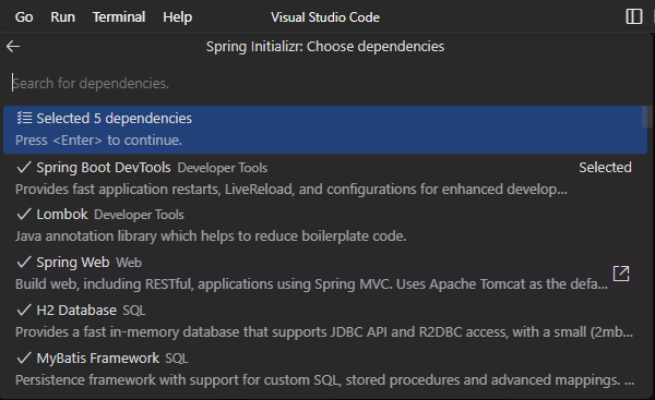 - Spring web : 웹을 빌드하기 위해 도와주는 라이브러리
