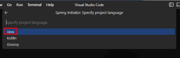 3. 언어는 java를 선택.