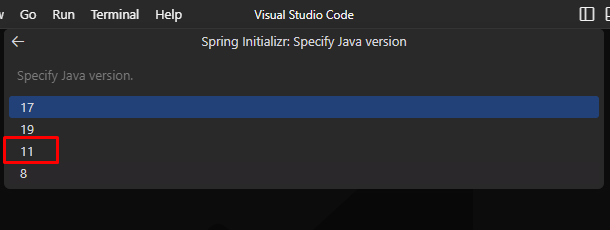 7. 자바는 11 버전을 사용합니다.