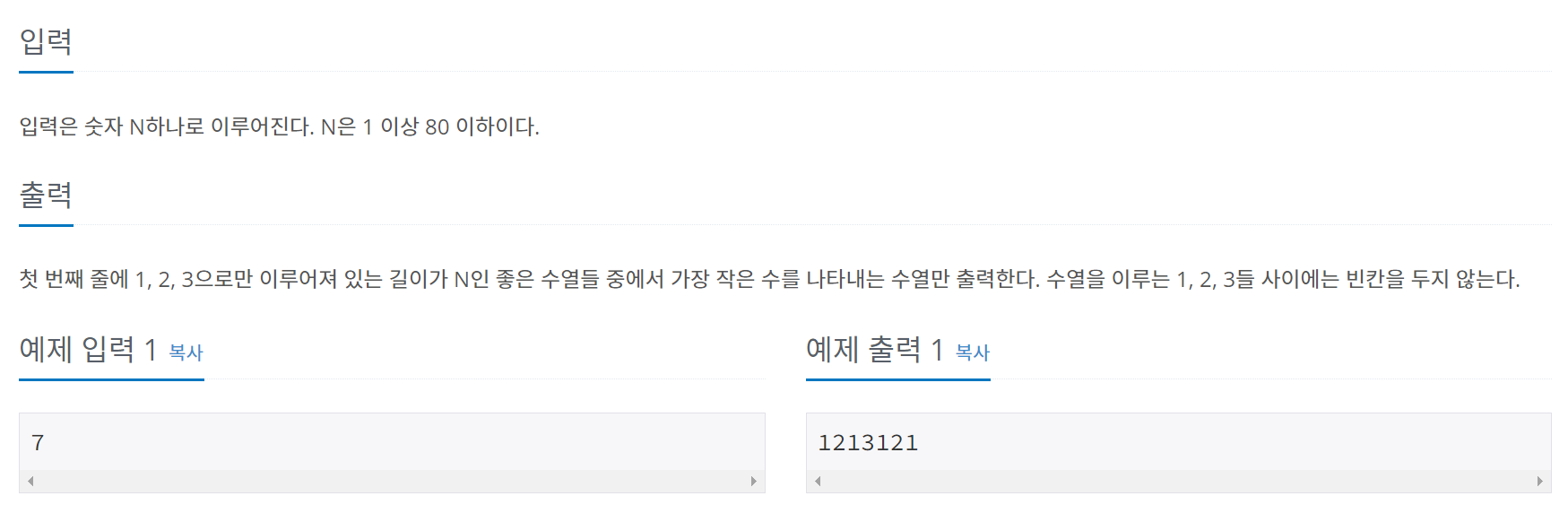 2. def generate_good_sequence(n, seq) 함수: 길이가 n인 좋은 수열 중에서 가장 작은 수열을 생성하는 함수.