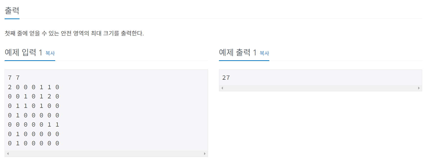 # 모든 조합에 대해 안전 영역의 크기를 계산하여 최댓값을 구합니다.