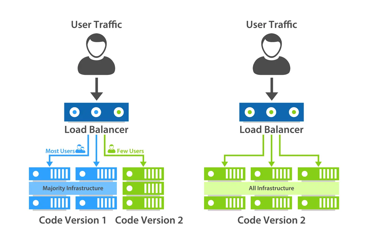 2. 단계적인 전환 방식을 통해 부정적 영향을 최소화하고 상황에 따라 트래픽 양을 늘리거나 롤백할 수 있다.