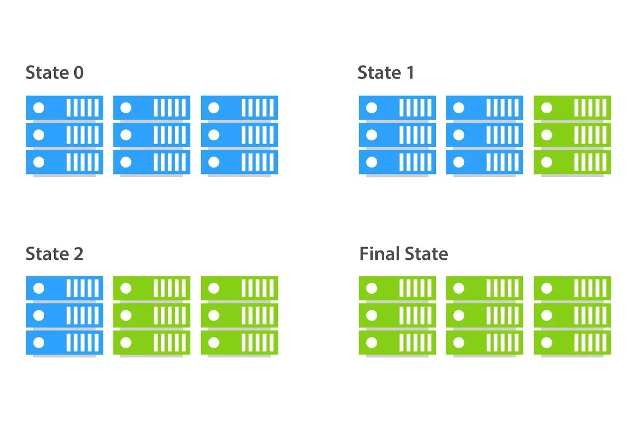 롤링 배포는 가장 대표적인 무중단 배포로서, 사용 중인 인스턴스 내에서 새 버전을 점진적으로 교체하는 방식이다.