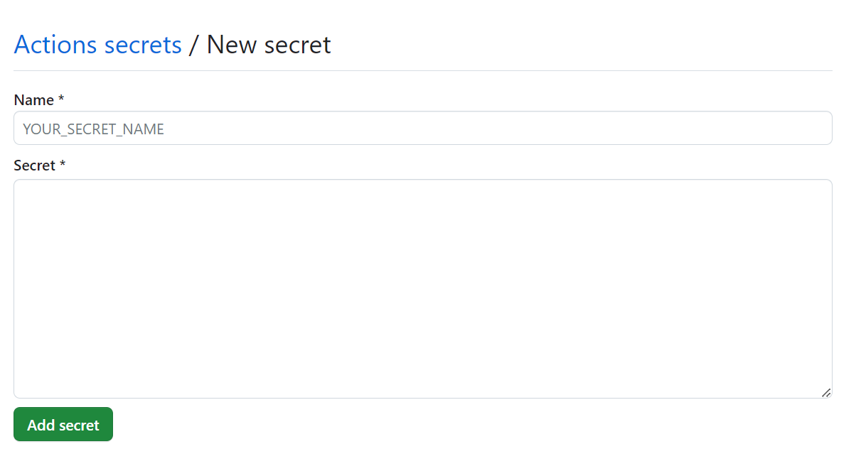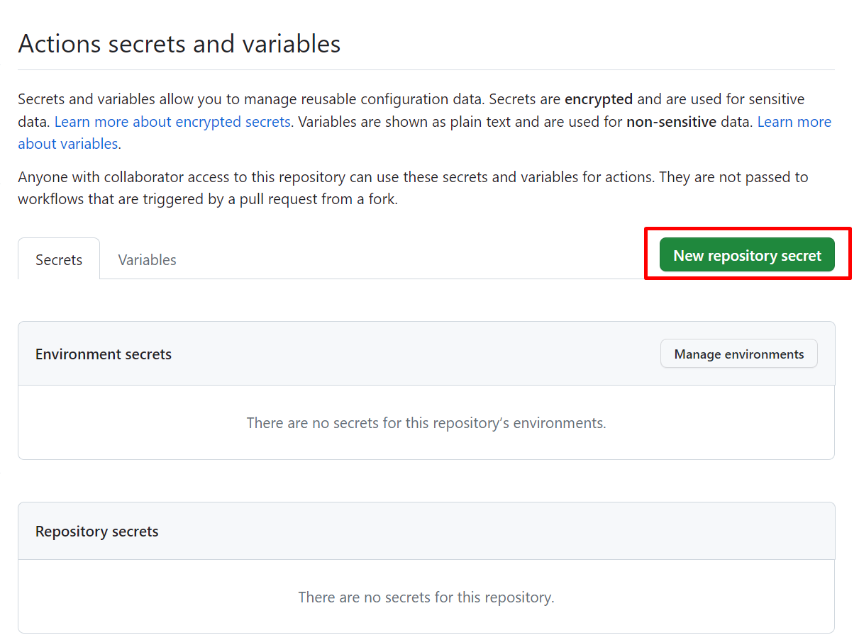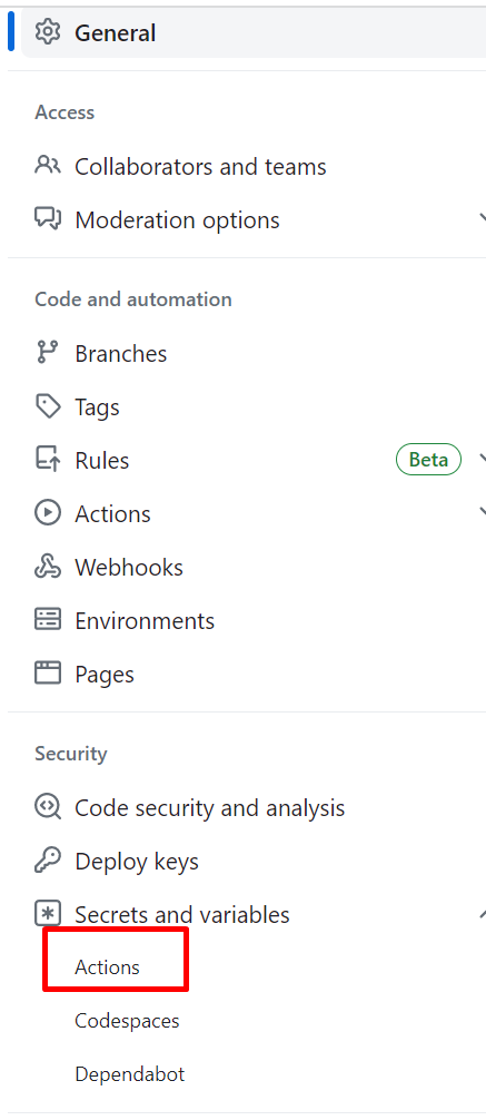 github 레파지토리에서 세팅, 시크릿, 액션 선택.