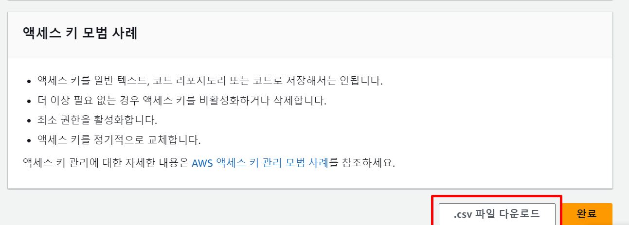 생성했던 액세스 키 두 가지를 다 등록해주자.
