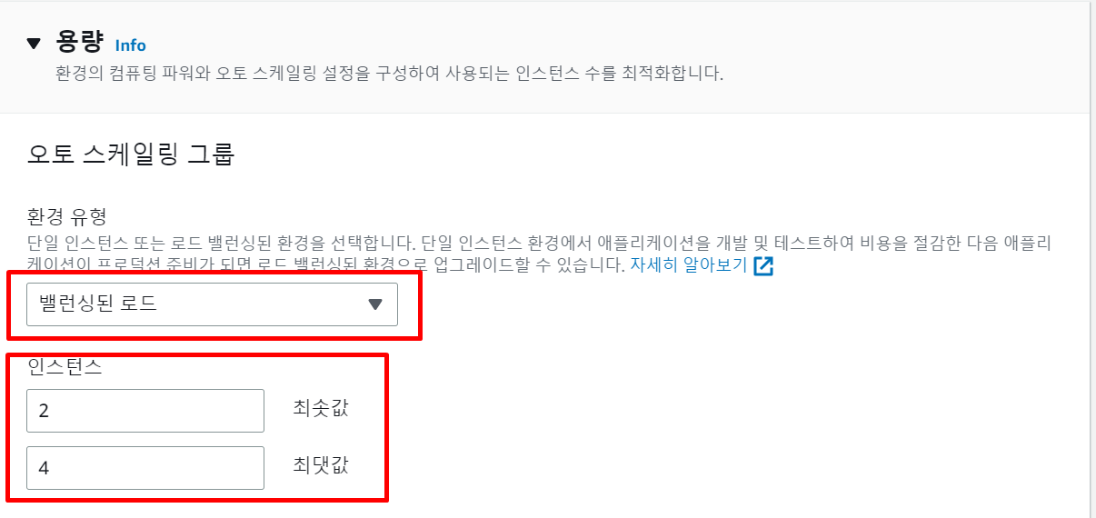 블루-그린 배포를 위해 최소 2개, 최대 4개를 설정해준다.