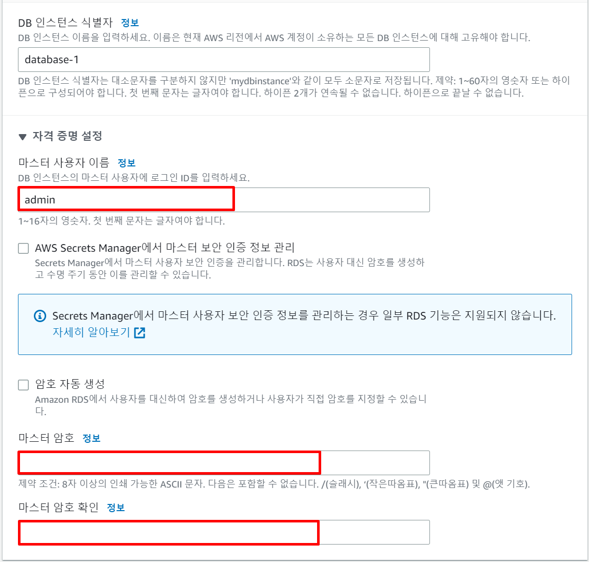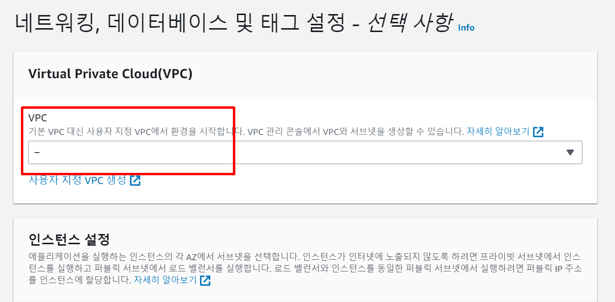 기존 서비스 역할과 EC2 인스턴스 프로파일, 키페어 선택.
