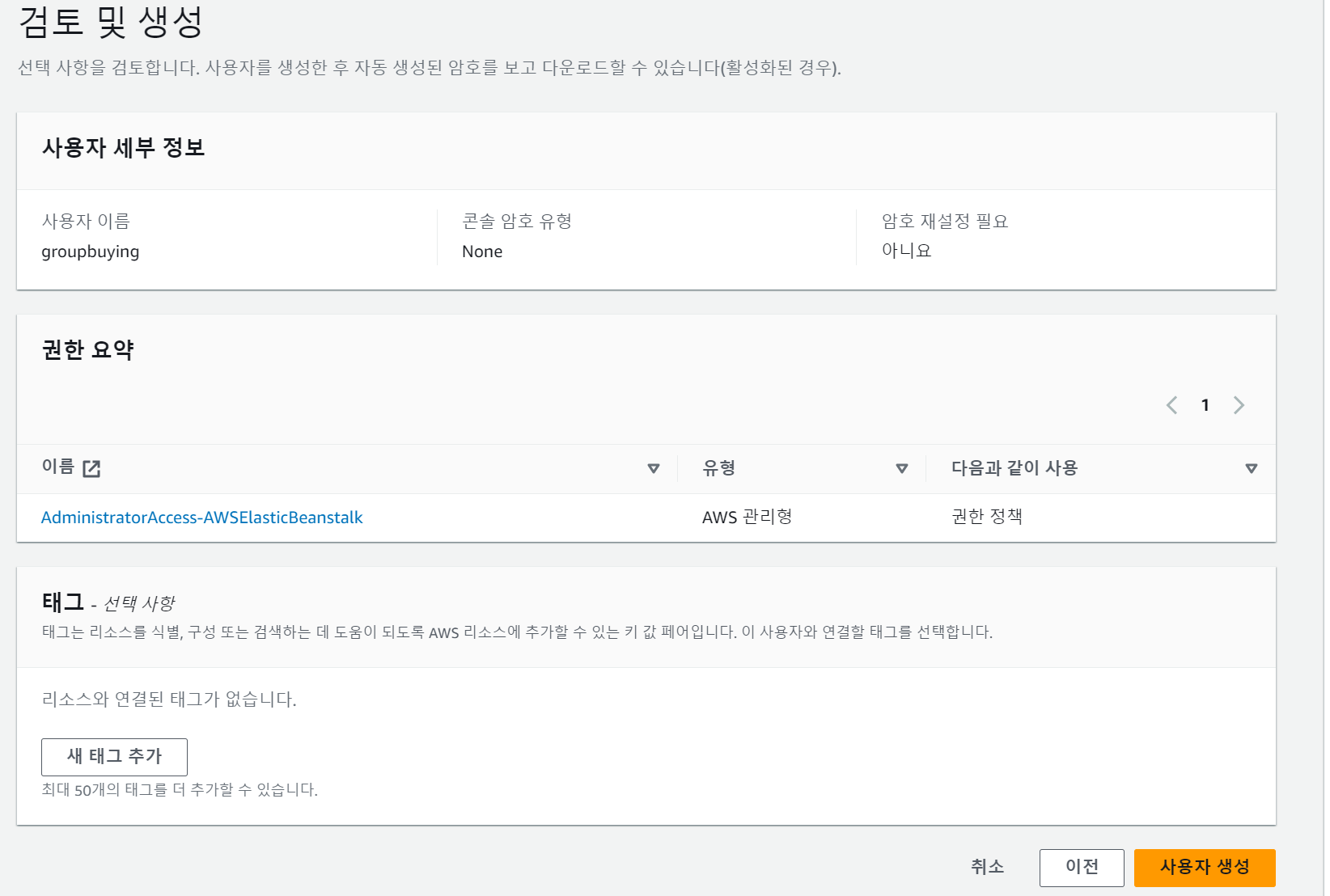 이제 github actions라는 사용자가 액세스 키를 사용해서 엘라스틱 빈스톡에 접근할 수 있게 된다.