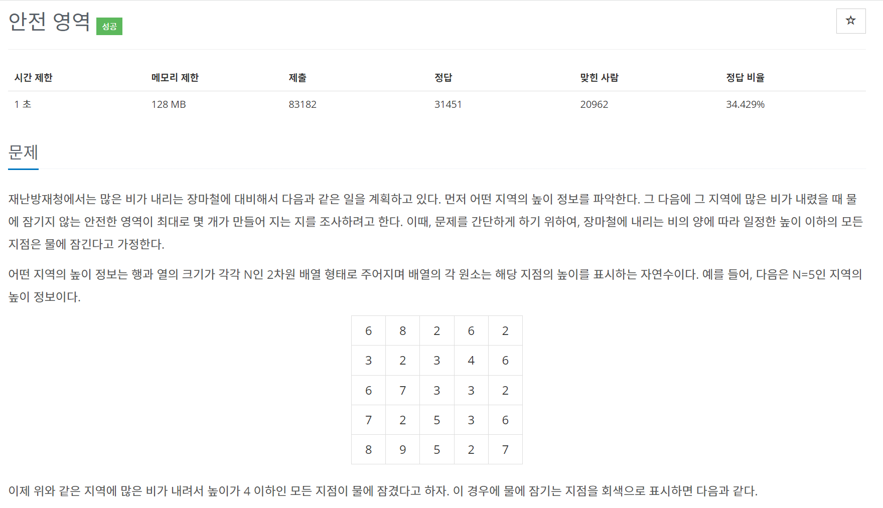 if temp_array[x][y] == 1: # 방문하였거나 물 잠김