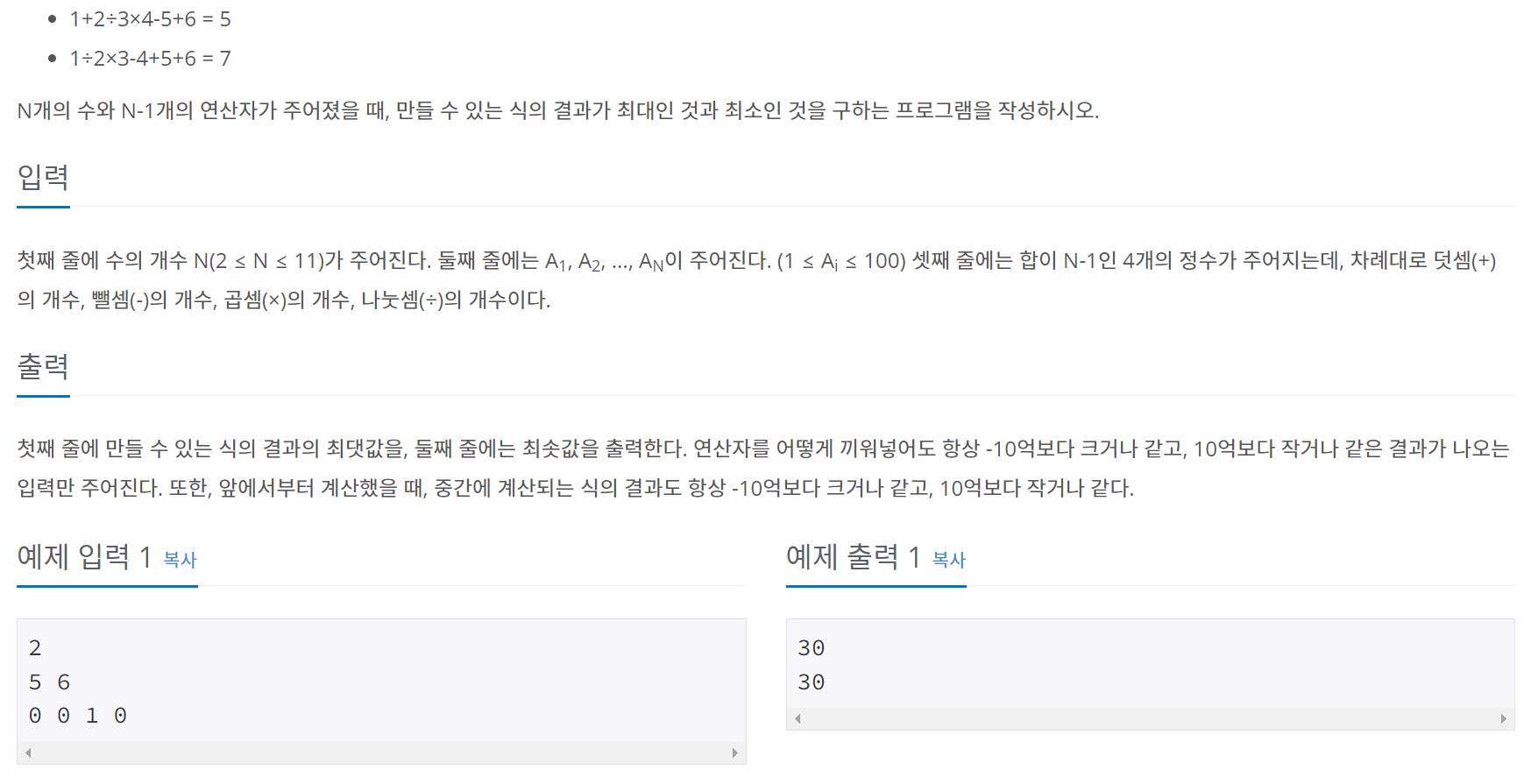 max_result, min_result = solution(N, operands, operators)