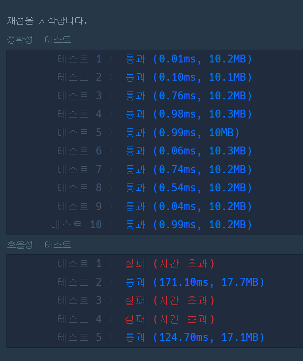 *10번 테스트 케이스는 통과 못함(런타임 에러)