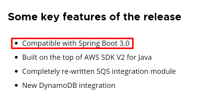스프링 부트 3.0 이상을 사용하고 있다면 Spring Cloud AWS 3.0.0 이상 버전을 사용하도록 하자.