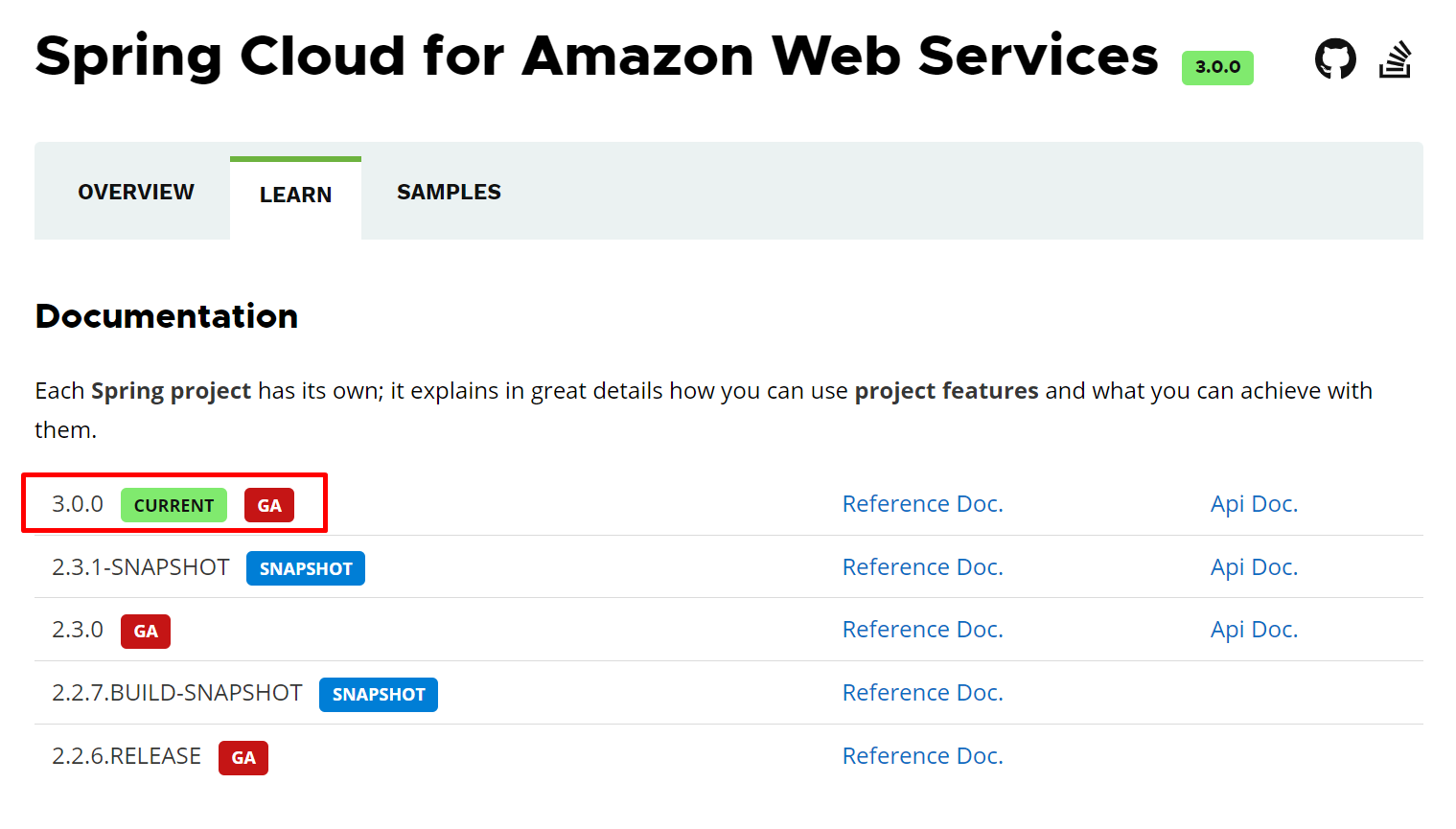 현재 최신 버전은 3.0.0이고 GA(General Availability), 테스트가 완료된 정식 릴리즈 버전을 의미한다.