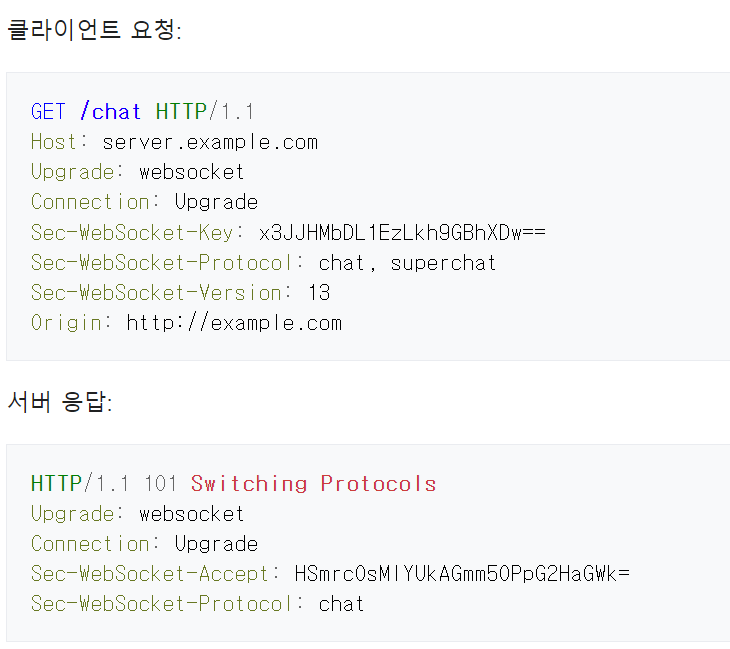 1. 클라이언트가 서버로 웹소켓을 연결하기 위한 HTTP 요청을 한다. (웹소켓 핸드쉐이크)