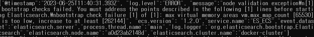 vm.max_map_count가 65530으로 설정되어 있는데, 262144 이상으로 수정이 필요하다는 내용인데.