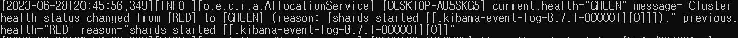 current.health="YELLOW" message="Cluster health status changed from [RED] to [YELLOW] (reason: [shards started [[.apm-source-map][0]]])." previous.health="RED" reason="shards started [[.apm-source-map][0]]"