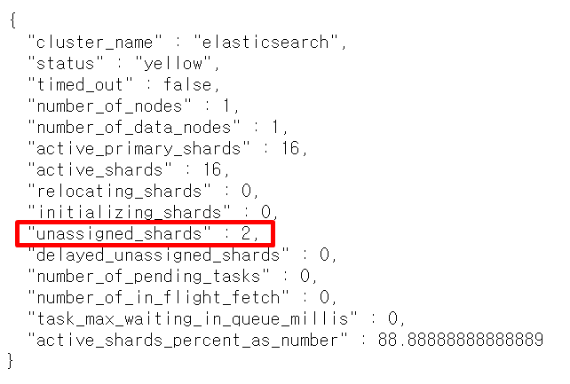 yellow상태인 샤드가 없으므로, health가 green으로 나오긴 하지만