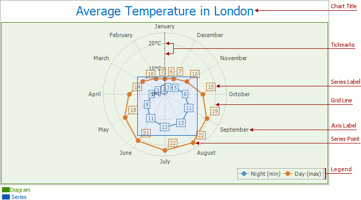 This document briefly describes basic Chart Control hierarchy, lists the general elements of a chart, and provides links to more detailed related topics. The available chart elements differ for different diagram types. And the diagram type in its turn is d