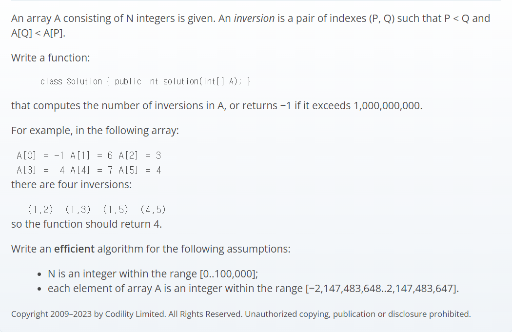 # 인버전 개수가 1,000,000,000을 초과하는 경우 -1 반환